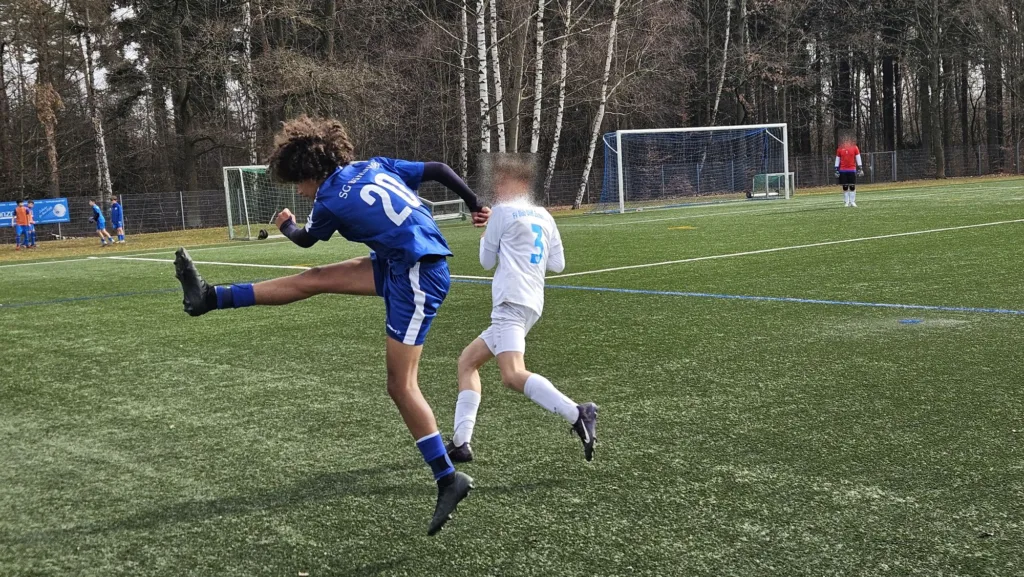 Die B‑Jugend macht es trotz 2:0‑Führung gegen Zschachwitz noch ein­mal span­nend und ret­tet mit einem 2:1 den Sieg über die Ziellinie.