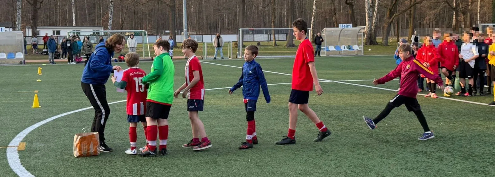 Ein Event gab es am Sonntag Nachmittag noch in Bühlau. Die Trainer Doreen und Marcel haben für die Jungs, welche bei uns in der Freizeitgruppe trainieren (Foto bei der Siegerehrung mit Doreen) und praktisch nie zum Spiel kommen, ein kleines Feldturnier gegen andere Mannschaften mit ebenso wenig Spielerfahrungen gemacht. Die Jungs haben sich gefreut, dass sie das erste Mal richtig im Einsatz waren und sich mit anderen Teams messen konnten. Mit dabei war Neustadt, Goppeln, Kesseldorf und ein Team des 1. FFC Fortuna Dresden.